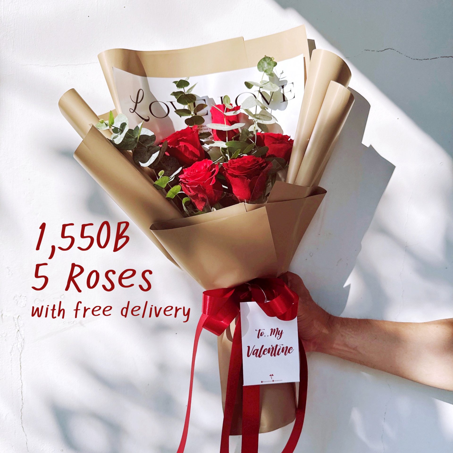 ช่อวาเลนไทน์ 5 ดอกและหมี